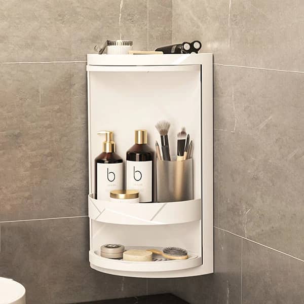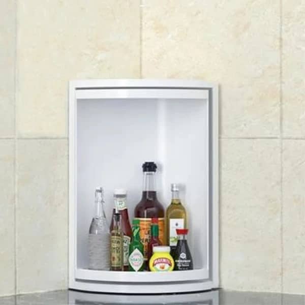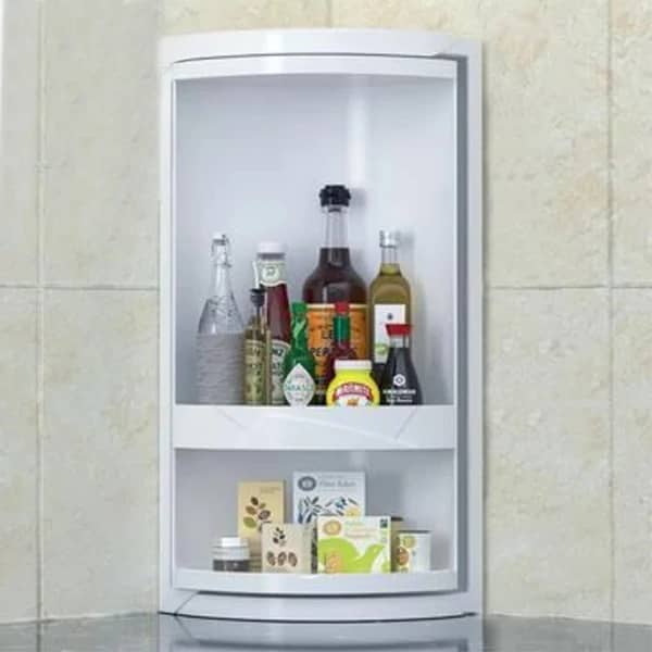 Конструкція з прямим кутом ефективно задіює простір у куті стіни, а настінне кріплення допомагає використати навіть вільну ділянку стіни, створюючи додаткове місце для зберігання.